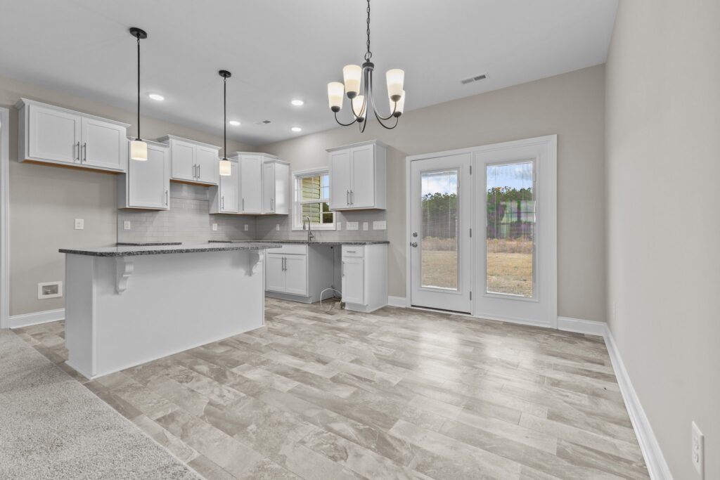 The 1340 Plan delivers efficiency and comfort in a smart single-level design. The open-concept living area seamlessly connects the great room, dining space, and kitchen, creating a warm and welcoming flow that’s perfect for gatherings or everyday living.
