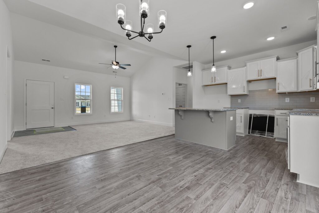 The 1364 Plan is a thoughtfully designed home that makes the most of every square foot. Its open-concept layout connects the great room, dining area, and kitchen, creating a comfortable flow that’s perfect for gathering with family or hosting friends. The kitchen is both stylish and functional, offering plenty of storage and workspace while keeping you connected to the main living spaces.