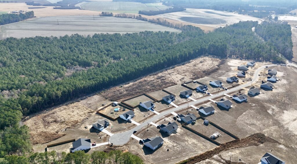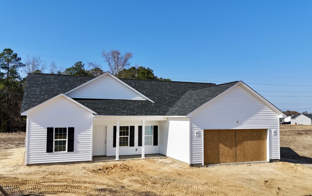 Welcome to McRainey Farm, where brand new ranch homes are coming together in a quiet country setting with spacious lots and room to breathe. These homes offer open-concept living with laminate flooring in the main living areas and a kitchen designed for everyday use, featuring granite countertops, tile backsplash, and a stainless steel side-by-side refrigerator included in the appliance package. Blinds will be installed prior to completion, making the move-in process easier. Each home is set on a large lot and features a split floorplan along with a covered back porch, a comfortable place to slow down and enjoy the setting. While the neighborhood feels peaceful, shopping, dining, and everyday conveniences are still close by. Located minutes from I-95 and a short drive to the new I-295 extension, McRainey Farm offers a convenient commute to Fort Bragg and easy access to surrounding areas. The area continues to grow with ongoing development and infrastructure improvements, adding to its long-term appeal. High-speed fiber internet is available throughout the community, supporting today’s work-from-home and connected lifestyles. Homes are currently under construction with anticipated completion in mid-February. Schedule a visit to see the homes and experience the neighborhood for yourself, and ask about available builder and lender incentives.